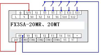 二、FX3SA 與 FX1S 的輸入接線不同