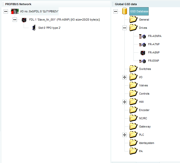 每個(gè)Profibus總線網(wǎng)絡(luò)模塊在組態(tài)時(shí),都需要對應(yīng)的GSD文件。而一些新模塊的GSD文件在組態(tài)軟件GX configurator-DP中并沒有,需要人工在三菱官網(wǎng)上下載并添加進(jìn)去。之所以會出現(xiàn)找不到型號的問題,就是因?yàn)闆]有在軟件中增添相應(yīng)GSD文件。FR-A7NP和FR-A8NP唯一使用區(qū)別就是安裝的GSD文件不一樣。而變頻器參數(shù),PLC程序,以及軟件組態(tài)都一樣。(具體使用方法可撥打我公司技術(shù)熱線0755-88352540咨詢。)