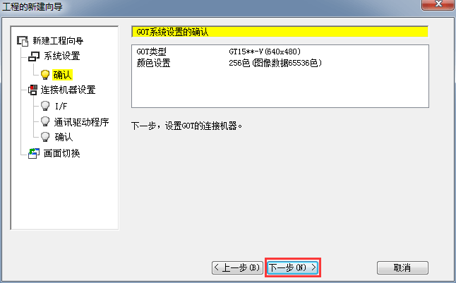 2.1.7 連接機器設置確認,確認機種連接參數設置,單擊[下一步]