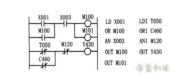 自保持后不再受X421 開關狀態(tài)的影響。當觸頭 X427 閉合時才令 M200 失電復位。指令