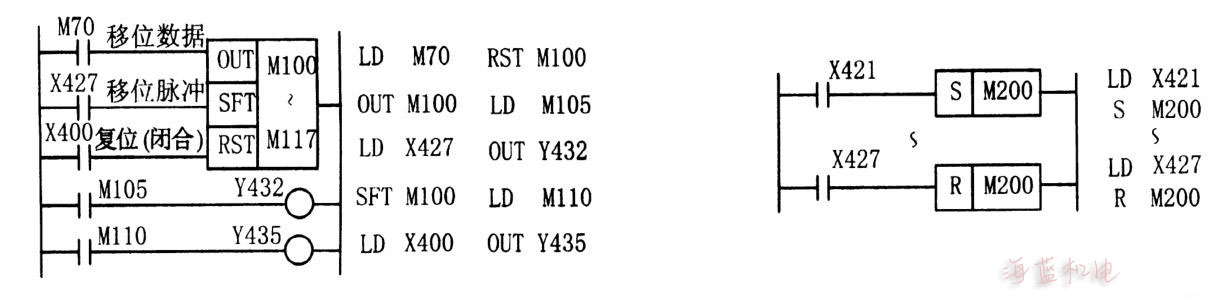7) 移位指令OUT M ×××,SFT M ×××,RST ×××