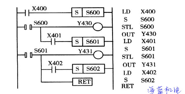 S600 閉合 (由步進指令STL 控制),使輸出繼電器 Y430 得電,同時為高一位的狀態(tài)器